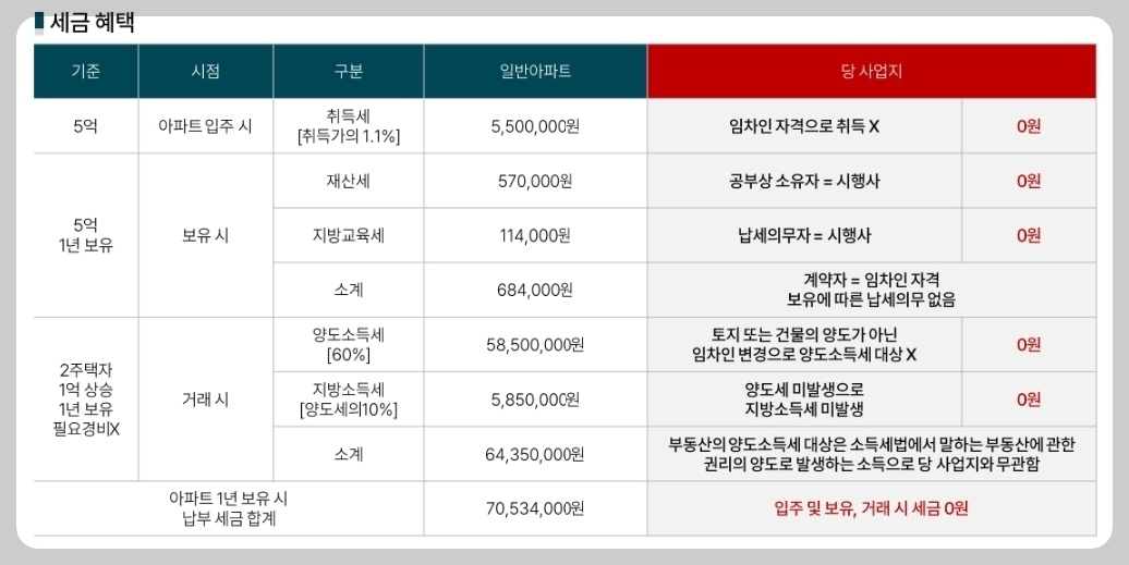 ● 자격조건 無, 취득세·재산세·양도세 無,